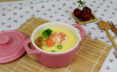 4、蒸锅烧开,放入鸡蛋液,大火蒸12分钟,然后加入青豆和虾仁再蒸3-5分钟就好了。