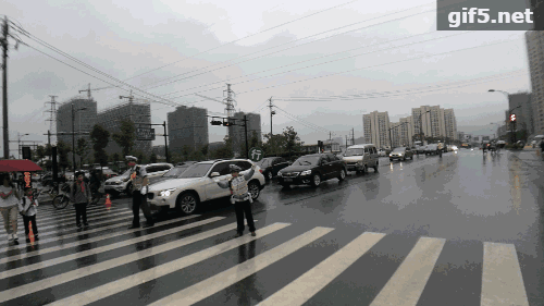 圆圆指挥孩子们通过斑马线,一招一式十分认真。