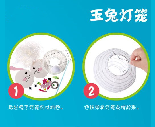 小兔子应该是圆滚滚的,所以这里需要准备一个白色圆形的纸灯笼(可在玩具市场买到,一个只需要几毛钱),将里面的铁丝拉出来,灯笼就支撑起来了。