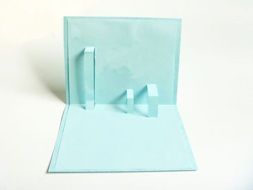 将已经划好的彩纸贴在卡纸上,就会有三条呈立体装的长条,如图所示。