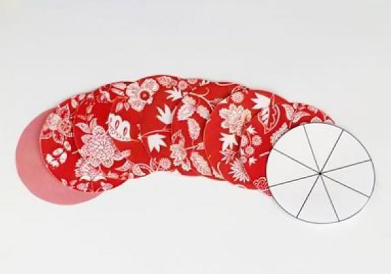 第一步:用剪刀在彩纸上剪出8个圆形,注意八个圆形的大小要一致,这样做出来的花形才会更加精致美观。