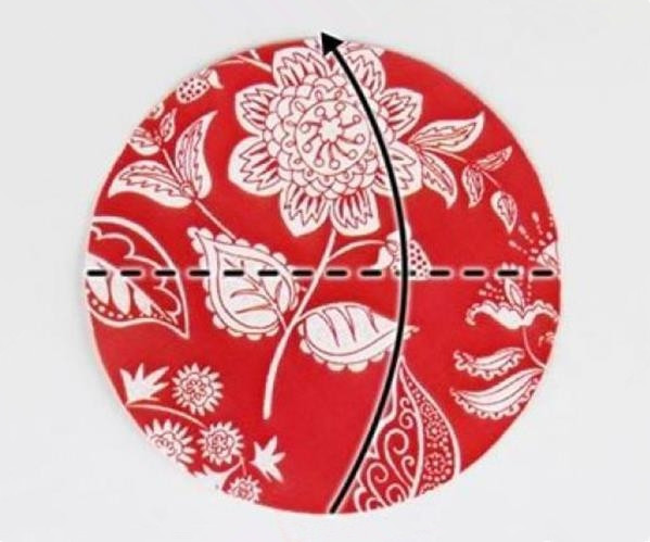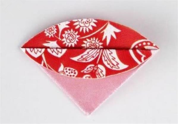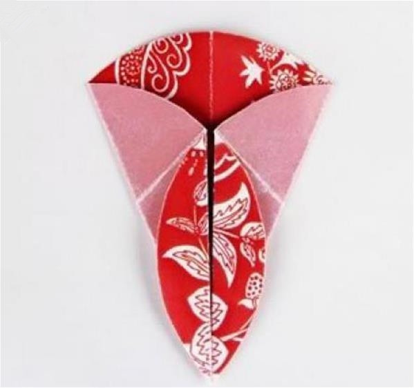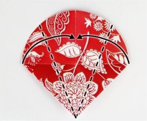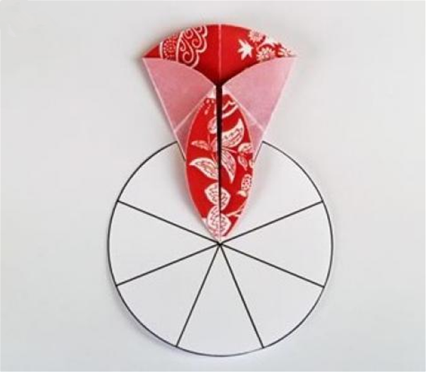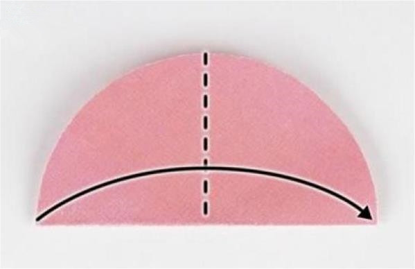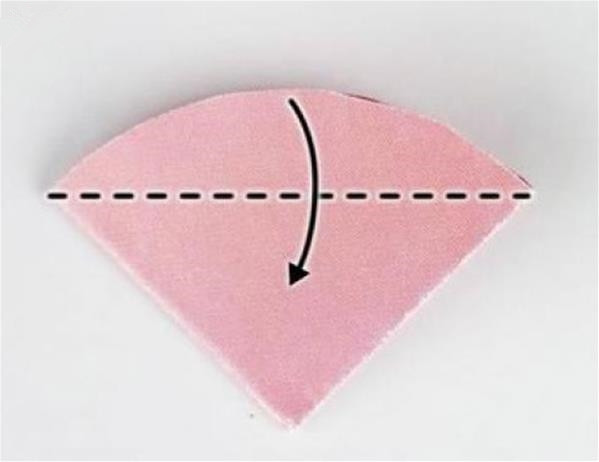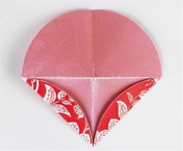 第三步:将对折好的半圆再次对折,注意对齐边角。