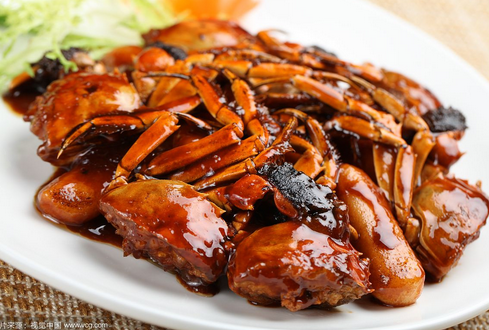 酱螃蟹其实就是生螃蟹,它对螃蟹的新鲜度要求很高,酱蟹的口感十分清爽滑嫩,像果冻,配上特色的酱油汁,非常好吃!