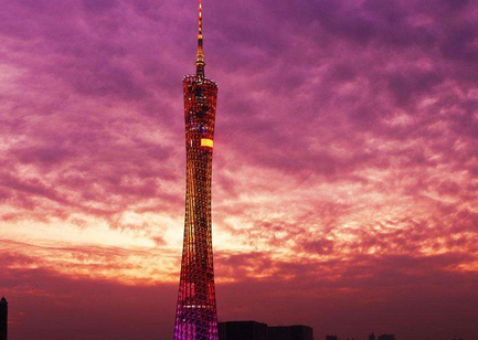 3.广州塔。广州塔位于广州市中心,城市新中轴线与珠江景观轴交汇处, 与海心沙岛和广州市21世纪CBD区珠江新城隔江相望,是中国第一高塔,世界第三高塔。