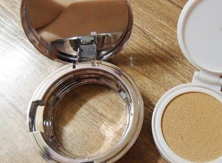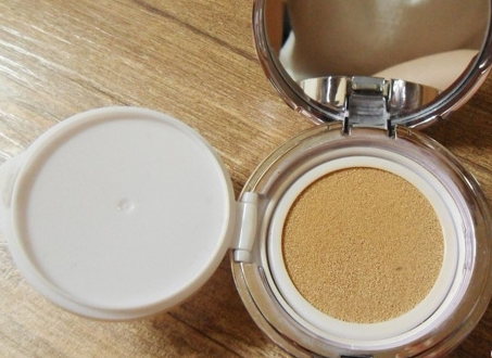 打开气垫粉的状态下,把气垫粉底部的中间部分。