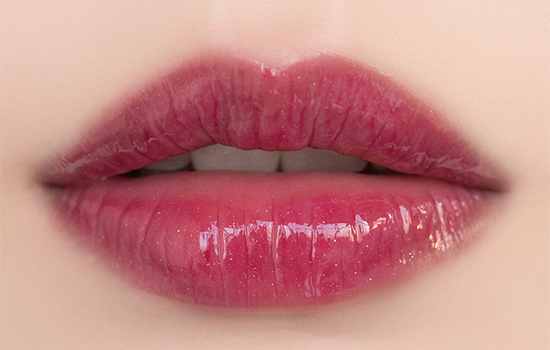 22号色是偏紫红色调的石榴色+银蓝色珠光,一般情况带点紫色调的唇釉会显得很老气,但这个颜色反而会超级显白!可能质地比较透的关系,所以上色柔和不会吧唧满嘴紫红色,蓝色偏光也是几只里面最明显的。偏冷,很气质,分分钟出御姐范的一个色。