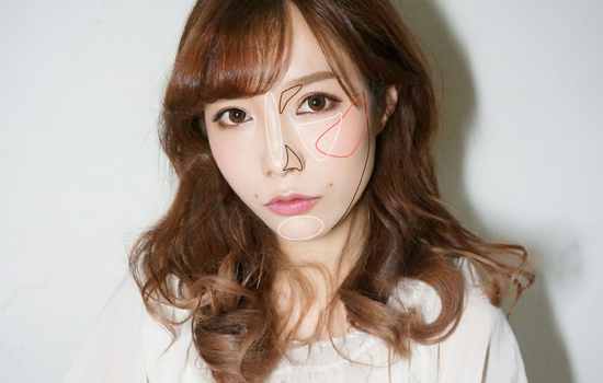日系的底妆通常是雾面感透明肌,选择少量轻薄款粉底液涂抹全脸,再全脸扫一层透明蜜粉明装。在苹果肌上斜上方向轻扫腮红,略显色即可。脸轮廓处再修容至下巴处,增加立体感同时打造瘦上脸效果。轻扫高光粉在鼻梁、下巴及脸内侧。