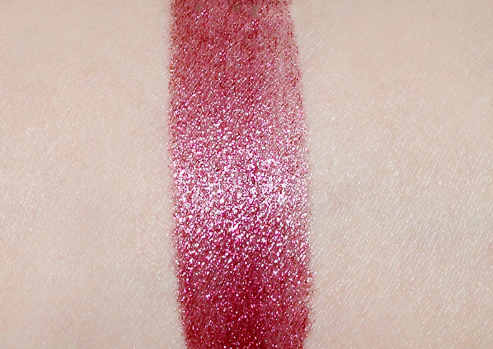 饱和度不高的额葡萄紫色,暖光下有豆沙感,质地滋润,显色度很好!!!