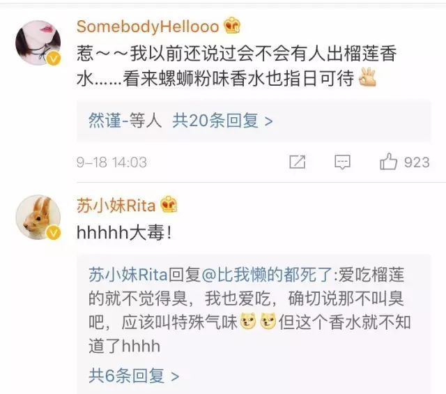 “榴莲味的香水有了,螺狮粉的香水还会远吗~”