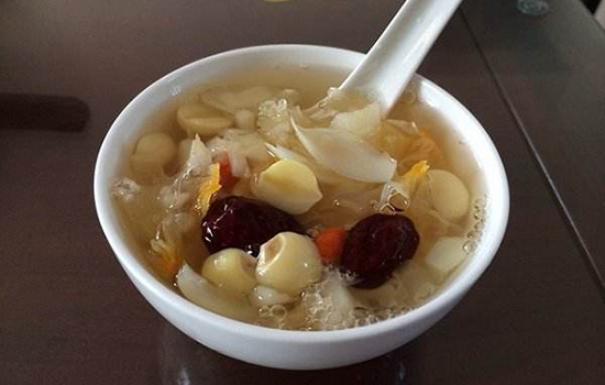 材料:莲子、百合各60克,银耳28克,冰糖240克。