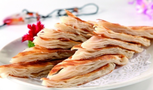 千层饼,又叫“瓤子饼”,是山东东平接山乡一带的汉族名吃之一,历史上以鄣城村路边客栈制作的风味最美。这种饼外边用一层面皮包起来,而内有十数层,层层相分,烙熟后,外黄里暄,酥软油润,热食不腻,凉吃不散口,且味道香美。千层饼也是浙江奉化溪口的汉族小吃,饼里拌有海苔粉,外面洒上一层芝麻。熟后酥香可口。千层饼也是一种纳西族食品。